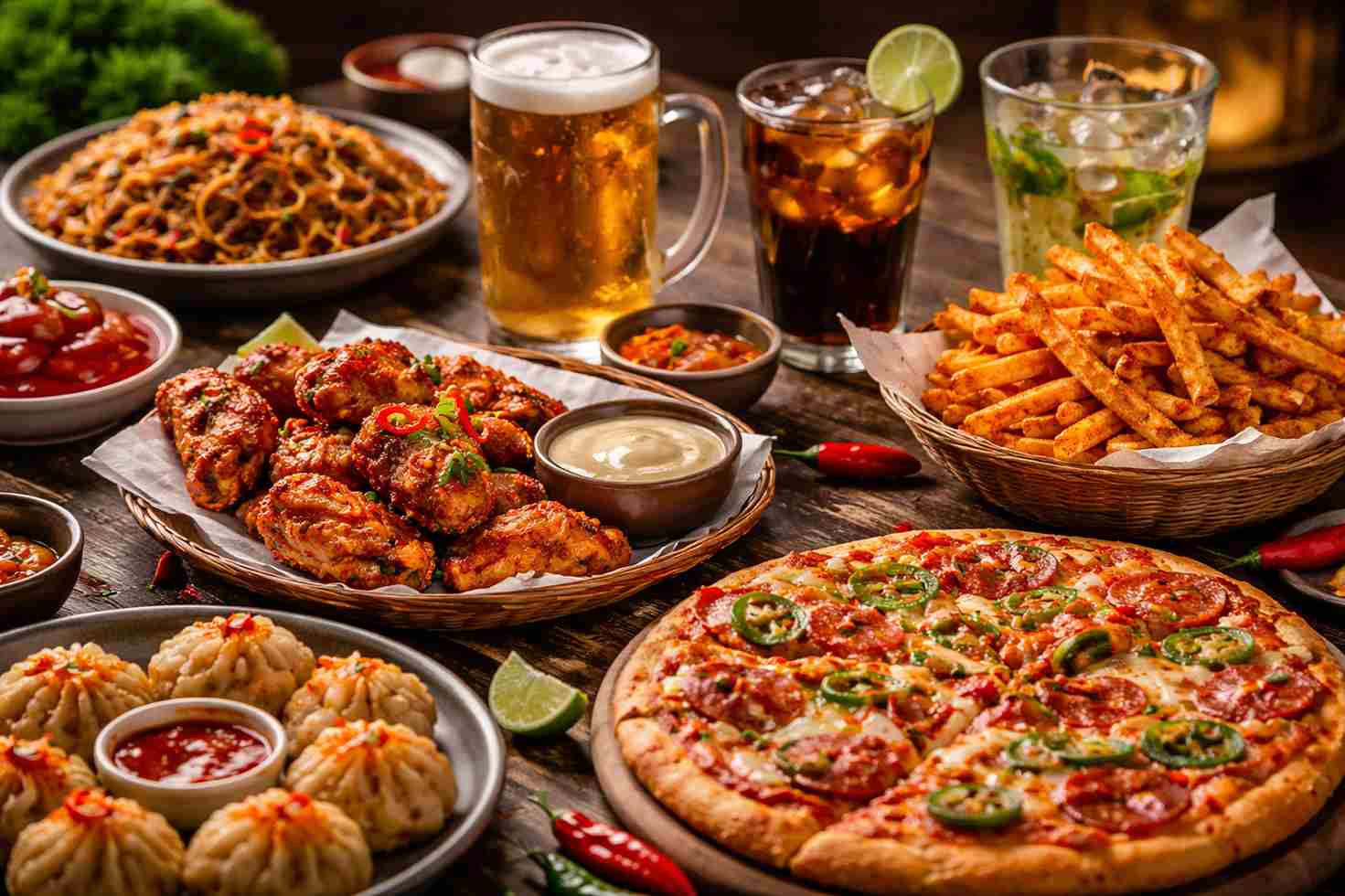 If you pick the correct snacks and pair them carefully, your late-night desires for the best spicy meals can be completely satisfied. You can take pleasure in delicious snacks guilt-free, such as spicy momos, sizzling wings, cheesy pizza, and spicy noodles.